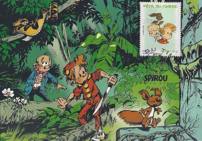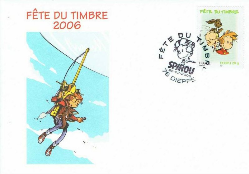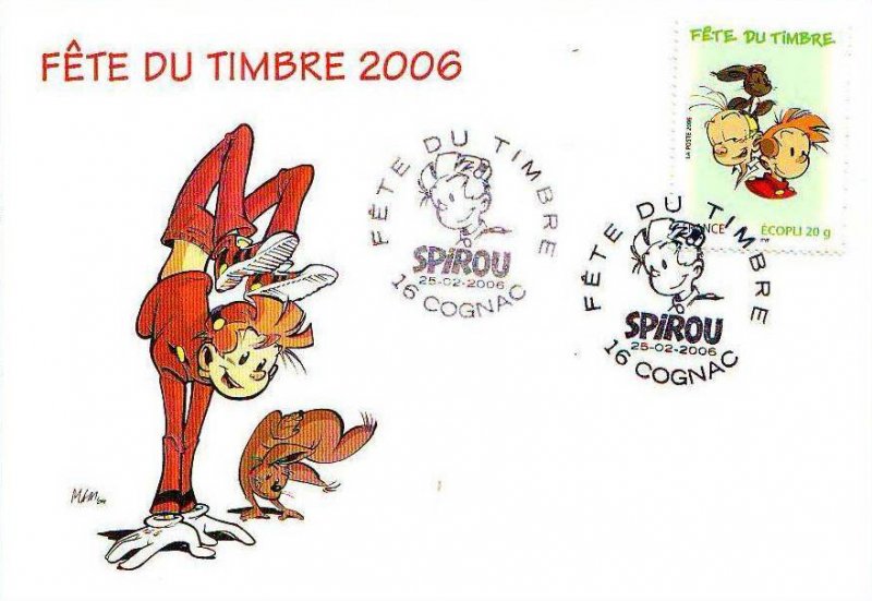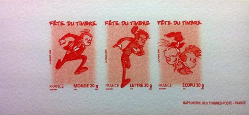 | Description | Fête du timbre 2006. Spirou, Fantasio et Spip l'écureuil |