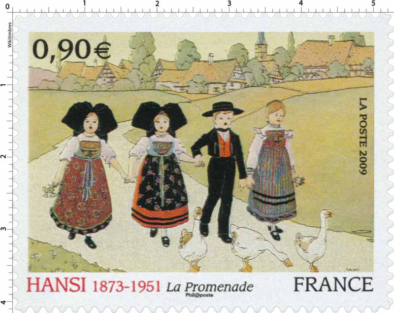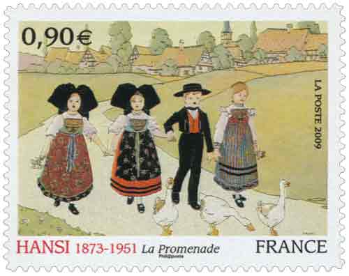 | Description | La promenade. Hansi (1873-1951), né à Colmar (Haut-Rhin), illustrateur alsacien (pseudonyme de Jean-Jacques Waltz) |