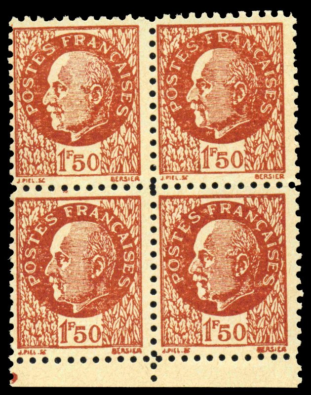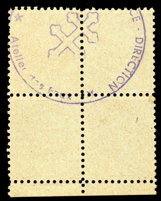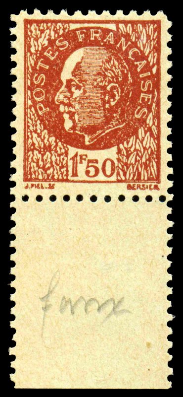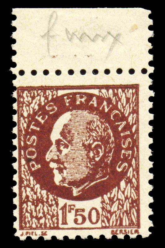 | Commentaire | Faux Pétain Voir documentation. Nota la notice ci-jointe était donnée à chaque acheteur de bloc de 24 timbres. Ce timbre a été imprimé en feuille de 96 timbres comportant 4 blocs de 24 timbres composés ainsi 6 timbres sur chaque ligne et 4 lignes en hauteur. Le timbre est dentelé 11 en ligne |