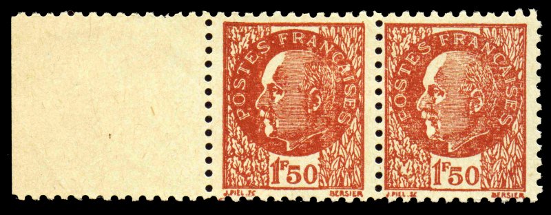 | Description | Maréchal Pétain - type Bersier, faux Pétain émis en feuille de 96 TP en février 1944 par la Résistance ( Le faux est à gauche, le vrai timbre est à droite) |