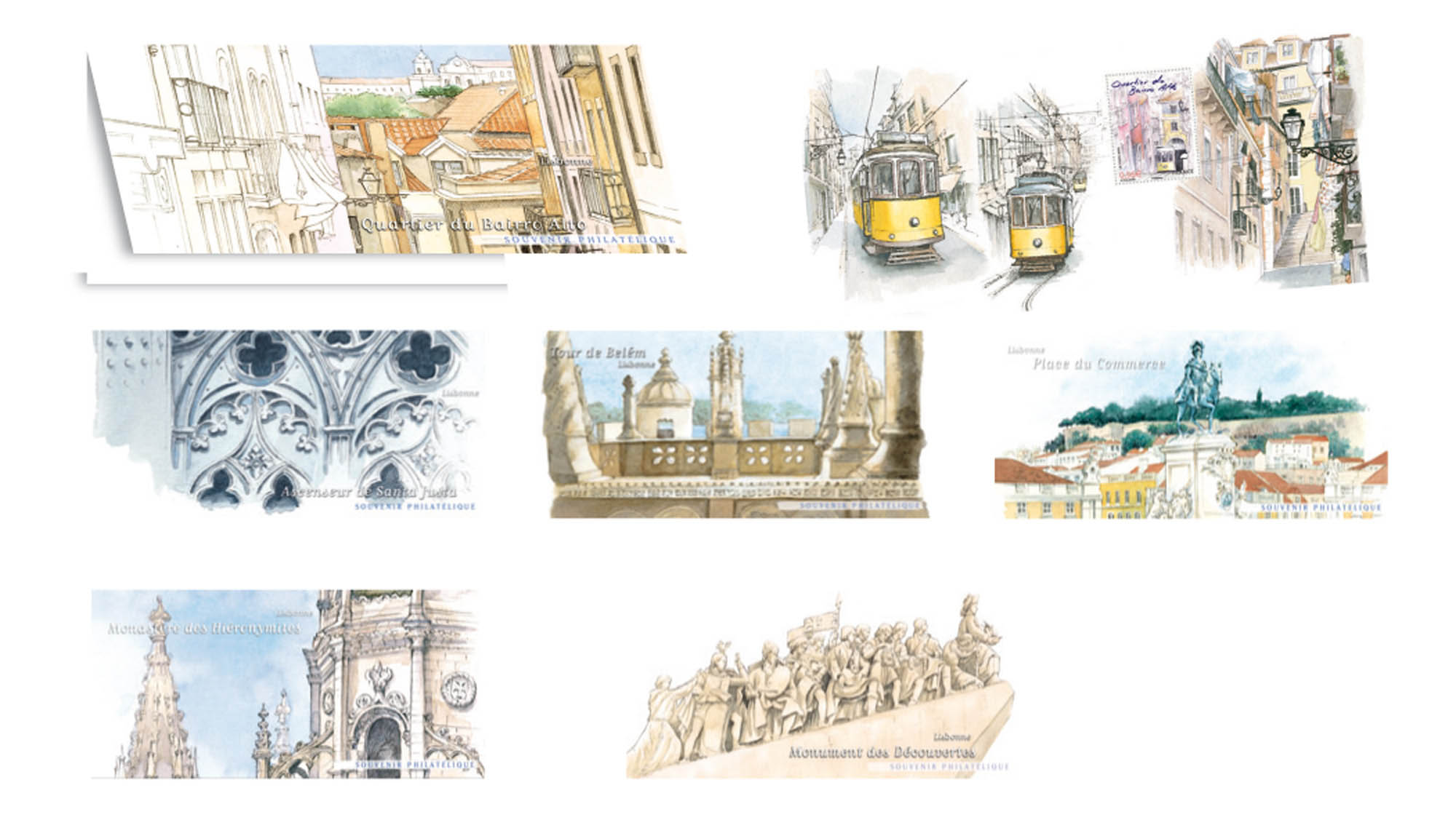 | Commentaire | Lot comprenant : 1 encart publicitaire- 6 cartes deux volets pliées dans lesquelles sont insérés :- un feuillet gommé incluant le visuel d’un des 4 timbres-poste « Lisbonne » extrait du bloc Capitales Européennes 2009 |