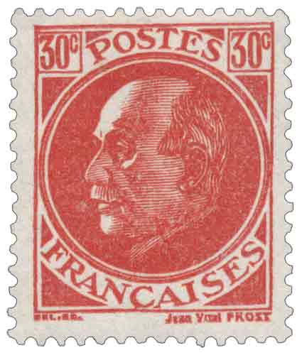 | Commentaire | Maréchal Pétain - type Prost. Démonétisé le :01/11/1944 L'émission de 1941 à l'effigie de Philippe Pétain au type Prost de couleur rouge constitue une pièce maîtresse de l'iconographie postale du régime de Vichy. Dessiné et gravé par Jean-Vital Prost, ce timbre d'une valeur faciale de 30 centimes présente un portrait de profil au graphisme épuré, rompant avec l'allégorie républicaine de la Semeuse. Imprimé en typographie rotative en feuilles de 100 unités, il répondait à des usages postaux multiples, notamment l'affranchissement du premier échelon de poids des imprimés ordinaires et le tarif préférentiel pour les envois jusqu'à 20g destinés aux militaires et marins sous les drapeaux. Mis en vente le 25 octobre 1941, sa carrière fut particulièrement brève puisqu'il fut retiré de la circulation dès le 2 mars 1942. Une particularité historique notable réside dans la genèse de ce dessin : le maréchal Pétain avait lui-même suivi de très près la création de ses timbres, exigeant un portrait qui ne le vieillisse pas trop tout en conservant une certaine majesté militaire. Le type Prost fut cependant rapidement jugé trop austère par les autorités de l'époque, ce qui entraîna son remplacement par les types Lemagny et Bersier. La dentelure 14 x 13½ et le format réduit de l'image (17 x 21 mm) sont caractéristiques des émissions d'usage courant de cette période de restrictions. |
