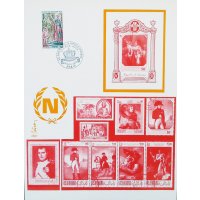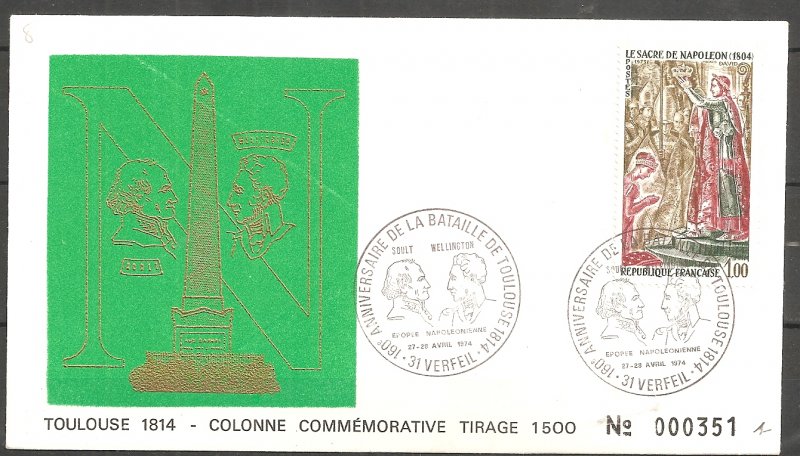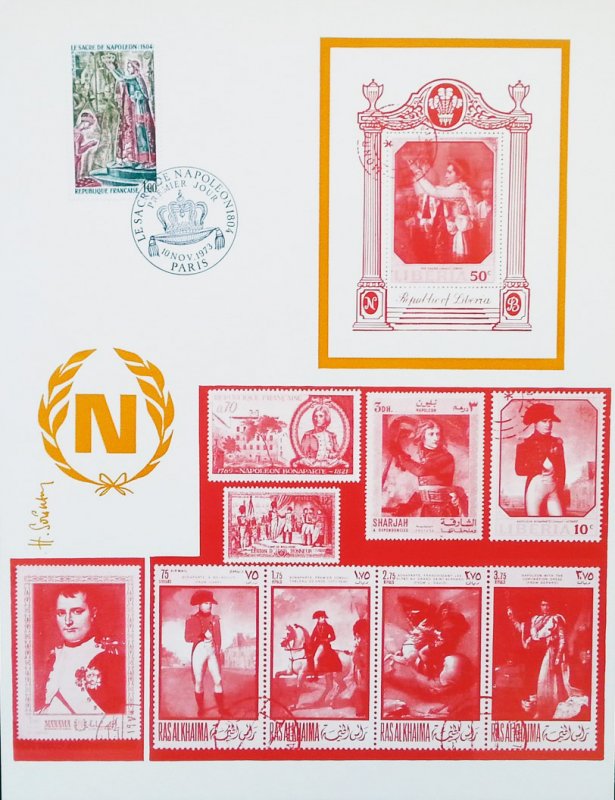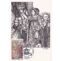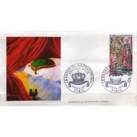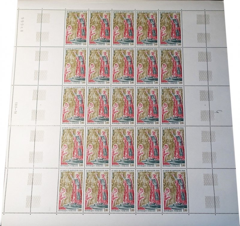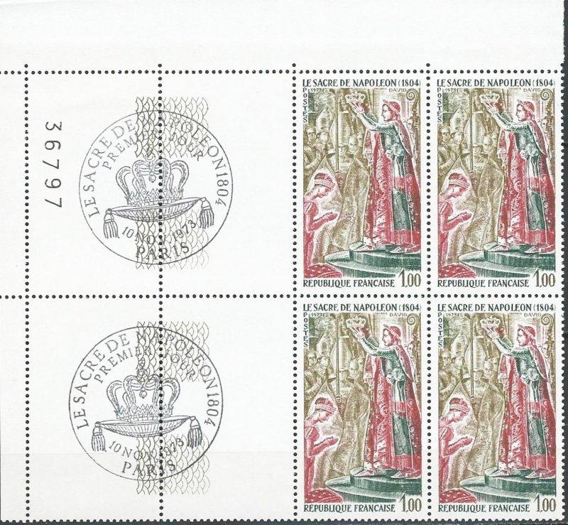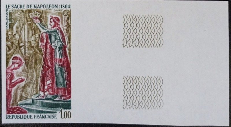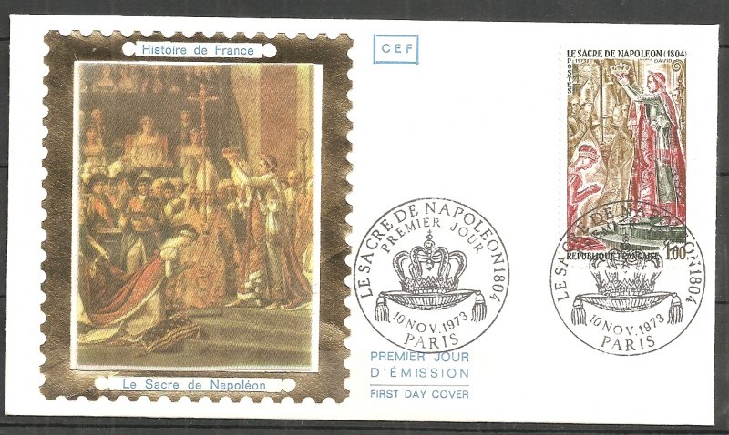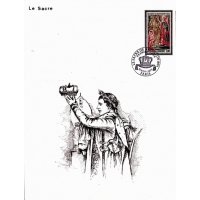 | Commentaire | Visuel : le sacre de Napoléon Ier est la cérémonie d’intronisation et de couronnement, qui suivit la proclamation de Napoléon Bonaparte comme empereur des Français, sous le titre de Napoléon 1er du 18 mai 1804. La cérémonie religieuse du sacre, par le pape Pie VII, suivie de celle du couronnement, se déroula, le 2 déc.1804, dans la cathédrale Notre-Dame de Paris. le peintre Jacques Louis DAVID (1748-1825, peintre, Conventionnel et Académicien) choisit la scène du couronnement de l'impératrice Joséphine de Beauharnais (1763-1814) par l'empereur Napoléon 1er, qui après s'être couronné lui-même, impose de ses propres mains le diadème à Joséphine, devant le pape Pie VII, le 2 déc.1804 à Notre-Dame de Paris. (une scène partielle du tableau de 1806/07 - huile sur toile - H 9,79 m x 6,21 m). |