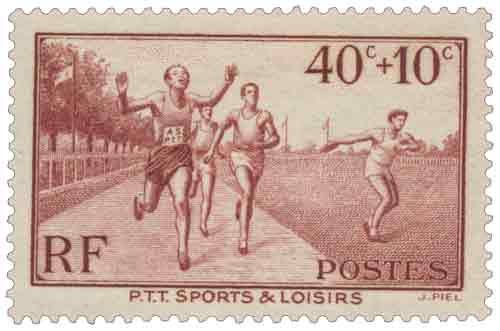 | Commentaire | PTT Sports et Loisirs - Sportifs. Fédération des Sociétés Postales de Mutualité : aider les oeuvres sociales dont l'action tend à l'amélioration générale de l'état sanitaire du personnel. La surtaxe de 10 centimes était destinée : 50% pour financer l'ASPTT (construction du stade de Pantin) - 35% pour subventionner les auberges de loisirs des PTT - pour 15% les colonies de vacances des enfants des personnels des PTT. Le timbre français Yvert et Tellier n°346, émis en 1937, est la deuxième valeur de la série de bienfaisance consacrée au soutien des œuvres sociales et sportives des P.T.T.. Affichant une valeur faciale de 40 centimes et une surtaxe de 10 centimes au profit de la Fédération des sociétés postales de mutualité, ce timbre illustre le thème de la Randonnée et Colonie de Vacances, symbolisant l'amélioration des conditions de loisir du personnel postal. Conçu et gravé en taille-douce par Jules Piel, il présente un dessin champêtre mettant en avant les activités de plein air, reflet des préoccupations sociales de la France de l'entre-deux-guerres et de l'essor des congés payés. Avec un tirage de l'ordre de 1,5 million d'exemplaires pour la série, ce timbre n'était pas destiné à l'affranchissement courant d'une lettre simple mais servait à des usages spécifiques de tarifs, tout en participant activement au financement de projets sociaux majeurs comme l'équipement sportif (stade de Pantin) et les structures pour la jeunesse, faisant de ce timbre PTT Sports un marqueur sociétal autant que philatélique de l'année 1937. |