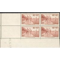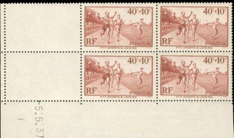 | Commentaire | PTT Sports et Loisirs - Sportifs. Fédération des Sociétés Postales de Mutualité : aider les oeuvres sociales dont l'action tend à l'amélioration générale de l'état sanitaire du personnel. La surtaxe de 10 centimes était destinée : 50% pour financer l'ASPTT (construction du stade de Pantin) - 35% pour subventionner les auberges de loisirs des PTT - pour 15% les colonies de vacances des enfants des personnels des PTT. Le timbre français Yvert et Tellier n°346, émis en 1937, est la deuxième valeur de la série de bienfaisance consacrée au soutien des œuvres sociales et sportives des P.T.T.. Affichant une valeur faciale de 40 centimes et une surtaxe de 10 centimes au profit de la Fédération des sociétés postales de mutualité, ce timbre illustre le thème de la Randonnée et Colonie de Vacances, symbolisant l'amélioration des conditions de loisir du personnel postal. Conçu et gravé en taille-douce par Jules Piel, il présente un dessin champêtre mettant en avant les activités de plein air, reflet des préoccupations sociales de la France de l'entre-deux-guerres et de l'essor des congés payés. Avec un tirage de l'ordre de 1,5 million d'exemplaires pour la série, ce timbre n'était pas destiné à l'affranchissement courant d'une lettre simple mais servait à des usages spécifiques de tarifs, tout en participant activement au financement de projets sociaux majeurs comme l'équipement sportif (stade de Pantin) et les structures pour la jeunesse, faisant de ce timbre PTT Sports un marqueur sociétal autant que philatélique de l'année 1937. |