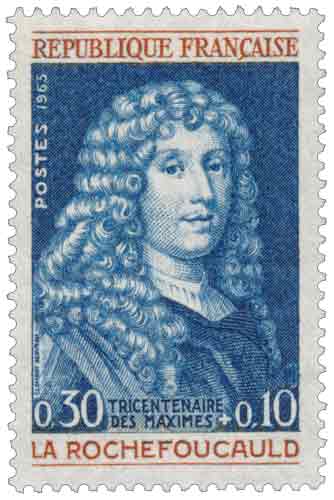 Émis en France en 1965 pour commémorer le tricentenaire de la publication des Maximes, ce timbre s’inscrit dans la tradition postale des émissions culturelles et littéraires associées à une surtaxe au profit de la Croix-Rouge française, en mettant à l’honneur une figure majeure du classicisme dont l’œuvre brève et incisive a marqué durablement la pensée morale française ; le choix de ce sujet intervient dans un contexte de reconnaissance institutionnelle des grandes œuvres de prose, la politique commémorative de l’époque privilégiant les anniversaires symboliques pour rappeler la place centrale de la littérature du XVIIe siècle dans le patrimoine intellectuel national, tandis que la représentation sobre et gravée en taille-douce souligne l’autorité et la permanence d’un texte qui, par son observation lucide des comportements humains, dépasse largement son siècle ; ce timbre de France, émis dans une série à caractère commémoratif et solidaire, traduit ainsi l’articulation recherchée entre culture, mémoire nationale et action humanitaire, une anecdote consensuelle étant que le succès immédiat des Maximes donna lieu à plusieurs rééditions successives dès leur parution, signe rare pour un ouvrage de prose morale à cette époque. |