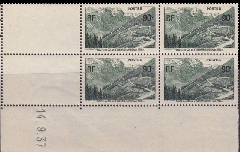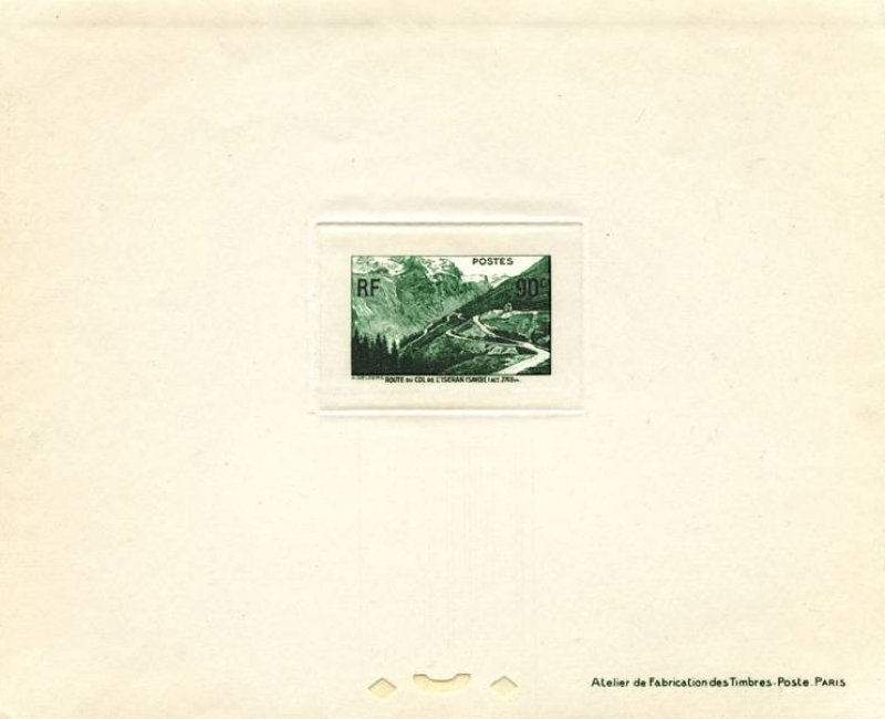 | Commentaire | Route du Col de l'Iseran (Savoie). En savoir plus sur Wikipédia: Col de l'Iseran Émis le 4 octobre 1937 en taille-douce rotative, ce timbre horizontal vert foncé célèbre un chef-d'œuvre d'ingénierie civile : l'inauguration de la route du Col de l'Iseran en Savoie. Avec ses 2 769 mètres d'altitude, le col est le plus haut passage routier des Alpes françaises, et cette émission philatélique met en valeur les efforts de modernisation et la beauté majestueuse des paysages alpins. Dessiné et gravé par Antonin Delzers, le timbre illustre le mariage réussi entre la grandeur naturelle de la montagne et l'audace technique humaine. D'une valeur faciale de 90 centimes, il était principalement utilisé pour l'affranchissement de la lettre pour l'intérieur au deuxième échelon de poids en 1937. Le tirage très important de 30 millions d'exemplaires souligne l'importance nationale donnée à cette nouvelle route pour le tourisme et les communications régionales. Ce timbre est resté en vente jusqu'en mars 1939. |