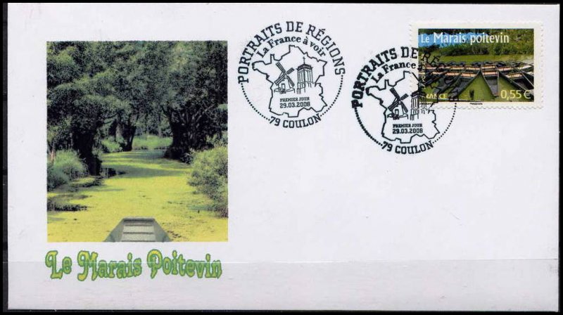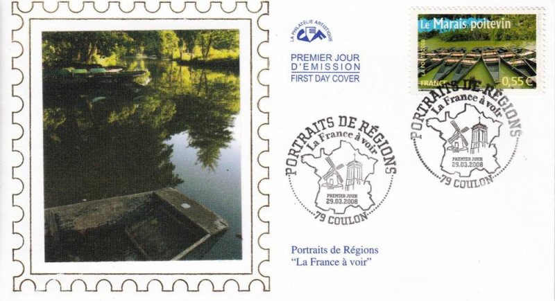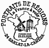 | Commentaire | BF117. Bloc de dix timbres de 0,55 euro La mise en vente anticipée du bloc a lieu dans plusieurs villes concernées par le sujet des timbres : Castelnaudary, Coulon, Honfleur, Paris, Perros-Guirec, Rigny-Ussé, Salazie, Sarlat-la-Canéda, Strasbourg et Vézelay. Le cachet premier jour représente une carte de la France métropolitaine sur laquelle figure un moulin et un clocher. |