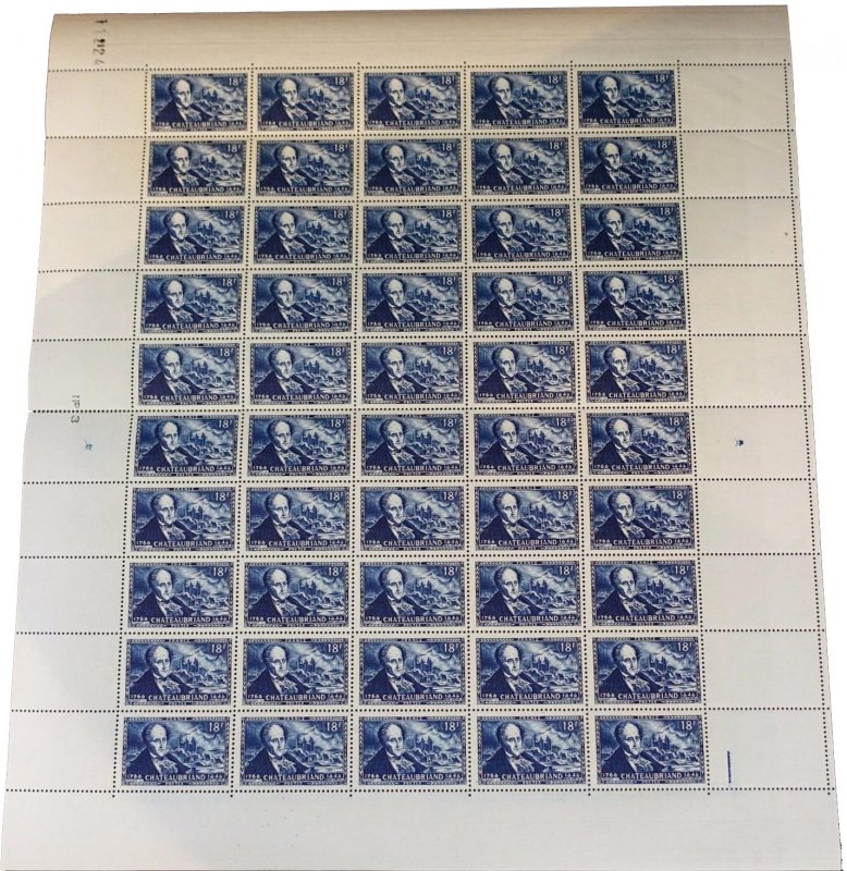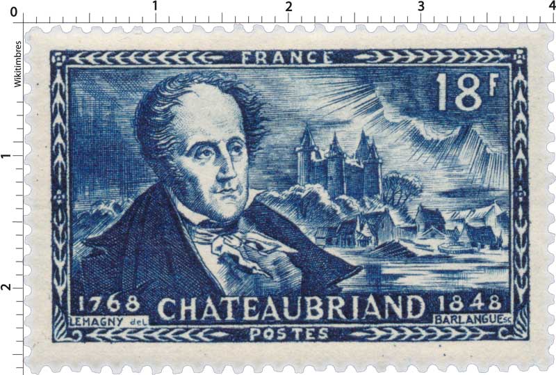 | Description | Centenaire de la mort de François René, vicomte de Chateaubriand (1768-1848), écrivain, né à Saint-Malo |