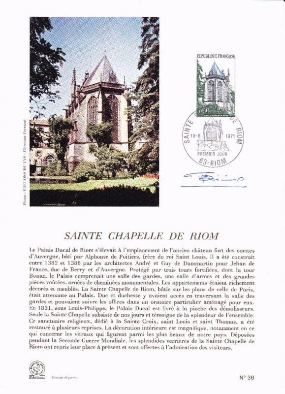 | Description | Sainte-Chapelle de Riom (actuellement dans l'enceinte de la cour d'appel de Riom), construite dans un style gothique flamboyant à la fin du XIVe siècle, par Jean de Berry |