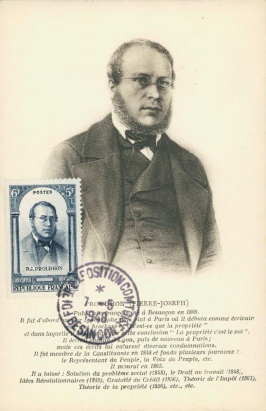 | Description | Centenaire de la révolution de 1848. Pierre Joseph Proudhon (1809-1865), économiste et sociologue, né à Besançon |