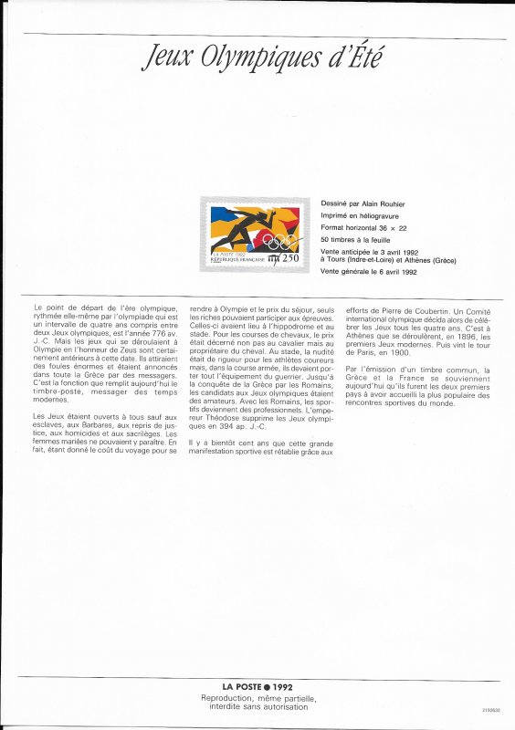 | Description | Jeux olympiques d'été 1992, à Barcelone (Espagne). Émission conjointe franco-grecque |