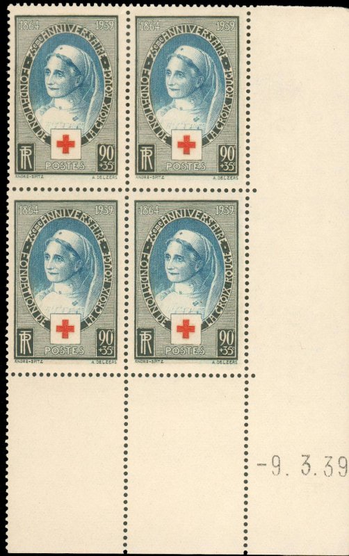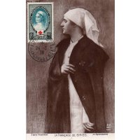 | Commentaire | Croix-Rouge - 75e anniversaire de la fondation de la Croix-Rouge. Ce timbre est grevé d'une surtaxe au profit de la Croix Rouge française |