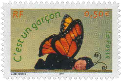 | Commentaire | Timbre pour naissance Émis en carnet, timbre auto-adhésif. Anne Geddes est une artiste photographe australienne. Elle met en scène des photos originales et élégantes de bébés, souvent des nouveaux nés, le plus jeune n’avait pas plus de deux jours. |