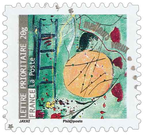 | Commentaire | La mise en vente anticipée a lieu les 7 et 8 novembre au Salon philatélique d'automne, à Paris. Le timbre à date premier jour par Marot représente une femme soufflant sur un pissenlit, les aigrettes se dispersant autour des mots-messages « Amitié, amour, bonheur, santé ». Timbre sans millésime |