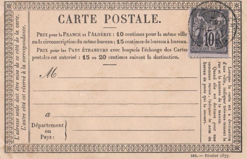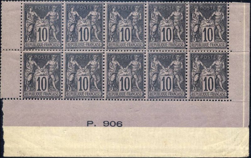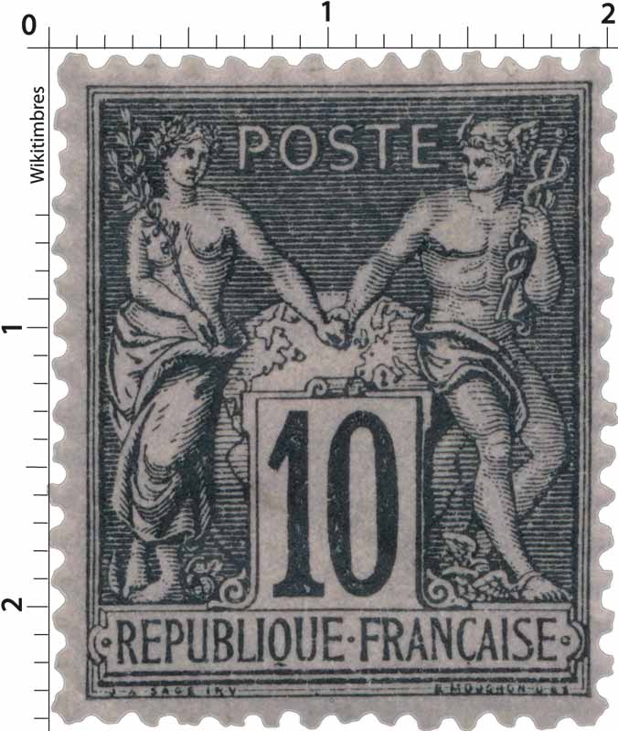 | Commentaire | Sage. Type III (N sous B) En savoir plus sur Wikipédia : Type sage ou allégorie de la Paix et le Commerce s’unissant Émis en février 1898, le timbre Sage de 10 centimes noir sur lilas appartient aux ultimes émissions de la série, juste avant son remplacement par les types Blanc, Mouchon et Merson en 1900. Cette valeur apparaît à un moment où les ajustements chromatiques et tarifaires deviennent nécessaires, notamment pour répondre aux nouvelles règles internationales et à la rationalisation des couleurs postales. Le 10 c noir sur lilas existe en type II et type III, ce dernier correspondant au poinçon retouché avec le « N » sous « B », seul modèle accepté par la Banque de France à la fin du XIXᵉ siècle. Les nuances du fond lilas varient sensiblement, allant du lilas pâle à des tons plus soutenus selon les tirages. En oblitéré, les cachets à date ordinaires sont les plus fréquents. Les plis réellement affranchis au tarif carte postale ou petite correspondance constituent les pièces les plus représentatives dans la famille des timbres classiques Sage. Aucun faux d’époque notable n’est répertorié. Ce 10 c noir sur lilas fait partie des dernières évolutions de la série Sage avant la transition vers les émissions du XXᵉ siècle. |