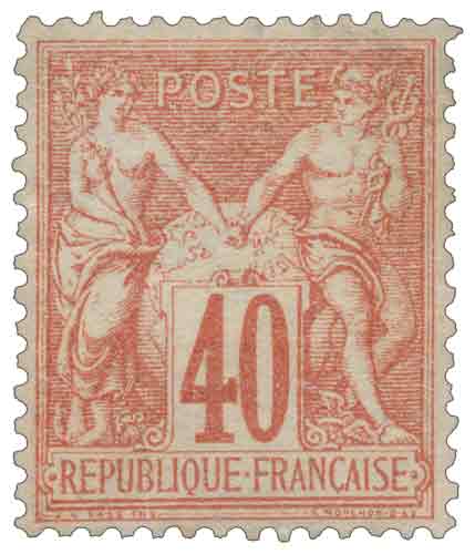 | Commentaire | Sage. Type IA (N sous B). Retrait 2 août 1881 En savoir plus sur Wikipédia : Type sage ou allégorie de la Paix et le Commerce s’unissant Le 40 centimes rouge-orange, n°70, appartient au type I de la série Sage. Bien que son impression commence dès mai 1876, il n’est mis en vente qu’à partir de 1878, l’administration ayant choisi d’écouler prioritairement les stocks encore importants du 40c Cérès. À l’origine, cette valeur est destinée à l’affranchissement des lettres simples pour l’étranger par voie de mer, un usage important dans les échanges postaux du dernier quart du XIXe siècle. À partir de janvier 1879, le 40c acquiert également un rôle majeur dans le service intérieur en devenant la valeur destinée aux lettres simples recommandées, en raison de la révision générale des tarifs. Sa teinte rouge-orange, très distinctive, répond à la logique de différenciation chromatique imposée par le décret du 5 juillet 1875. Cette couleur vive facilite l’identification immédiate des affranchissements de forte valeur et marque la volonté de moderniser la gamme des timbres français. Comme tous les exemplaires du type I, le 40c porte la signature « J A SAGE INV » avec le N placé sous le B de « RÉPUBLIQUE », caractéristique du premier poinçon retouché. Le n°70 constitue ainsi l’une des valeurs internationales les plus emblématiques des débuts de la série Sage.
