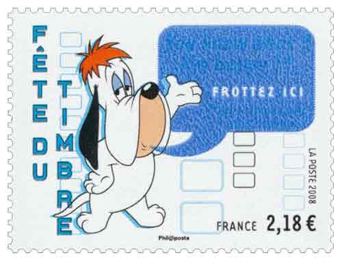 | Description | Fête du timbre 2008. Personnages de Tex Avery (1907-1980) : Droopy parle, ses paroles sont imprimées dans une bulle avec une encre thermochrome |