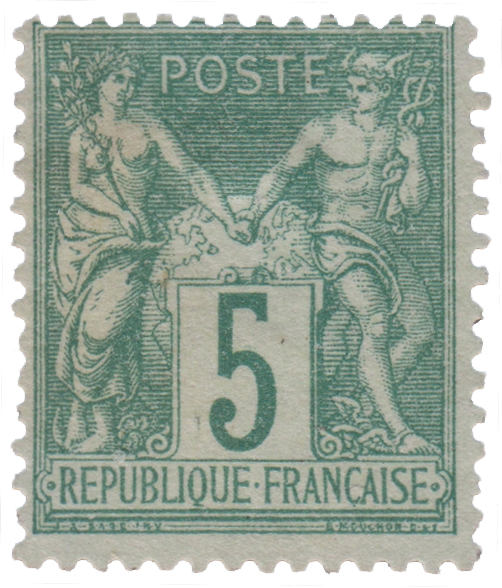 | Commentaire | Sage. Type IA (N sous B). Retrait 28 nov. 1876 En savoir plus sur Wikipédia : Type sage ou allégorie de la Paix et le Commerce s’unissant Le 5 centimes vert, n°64, appartient au type I de la première émission Sage. Son impression débute en mars 1876, mais sa mise en circulation est retardée : les bureaux doivent d’abord épuiser les stocks du 5c Cérès, encore abondants. Cette transition provoque une situation philatéliquement intéressante : on connaît quelques exemplaires oblitérés au Havre fin mars 1876, mais ils proviennent de feuillets détachés avant la mise en vente officielle et n’ont donc pas été conservés sur document. La couleur verte retenue pour cette valeur respecte les prescriptions du décret du 5 juillet 1875, qui attribue à chaque montant une nuance distincte afin d’éviter toute confusion entre les différents affranchissements. Le 5c joue un rôle important dans les affranchissements réduits, notamment pour les imprimés ou certaines combinaisons tarifaires. Comme pour toutes les émissions Sage, le type I se reconnaît à la signature « J A SAGE INV » dont la lettre N se place sous le B de « RÉPUBLIQUE ». Cette caractéristique distingue les premières impressions des types II et III utilisés ultérieurement. Le n°64 marque ainsi l’entrée du 5 centimes dans la nouvelle esthétique républicaine établie par l’émission Sage.