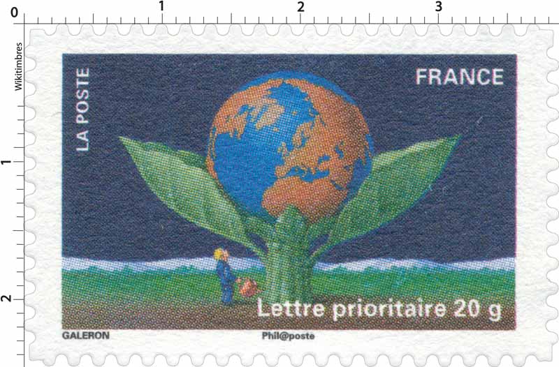| Description | Carnet Fête du timbre - Le timbre fête la terre (Homme arrosant une plante contenant la Terre) |