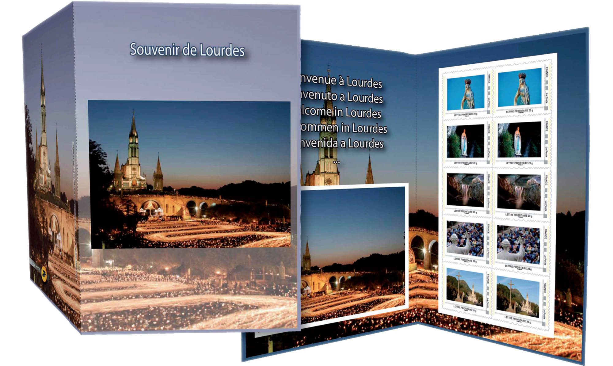 | Commentaire | Spécial visite du Pape à l’occasion de la venue du Pape en septembre, Phil@poste émet deux “Souvenirs” de 10 timbres “MonTimbraMoi” Lourdes |