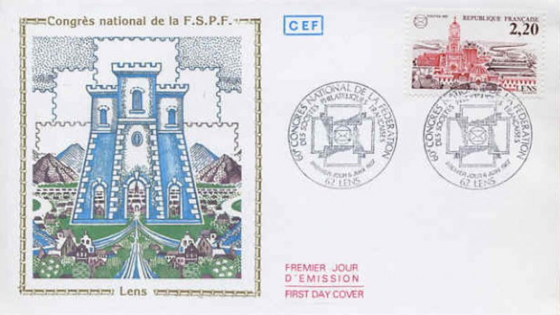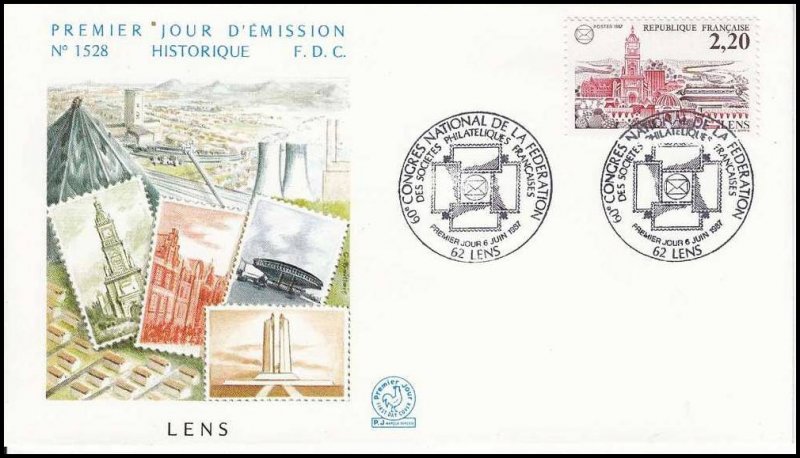| Description | 60e congrès national de la Fédération des sociétés philatéliques françaises à Lens et représentation des monuments |