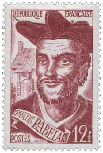 | Commentaire | Visuel : François RABELAIS (pseudonyme : Alcofribas Nasier) : né en 1483 (ou 1494) à la Devinière, à Seuilly, proche de Chinon (37-Indre-et-Loire) et décède à Paris le 9 avril 1553. Il fut ecclésiastique, anticlérical chrétien et libre penseur, médecin et bon vivant, écrivain humaniste de la Renaissance. En mars 1546, Rabelais fuit la France et se retire en tant que médecin, ou conseiller, jusqu'en juin 1547 (ou au début de 1548) à Metz, ville impériale libre. Émis en 1950, le timbre-poste gommé consacré à François Rabelais s’inscrit dans la politique philatélique française d’hommage aux grandes figures de la littérature nationale, à travers une émission commémorative à usage postal effectif. Dessiné et gravé par Albert Decaris d’après une œuvre de Léonard Gastien, ce timbre vertical présente un portrait gravé de Rabelais conforme à l’iconographie humaniste traditionnelle, mettant en valeur la figure du médecin, prêtre et écrivain de la Renaissance française. Imprimé en taille-douce rotative, procédé privilégié pour les émissions culturelles de prestige de l’après-guerre, il se caractérise par une gravure expressive et un modelé appuyé, adaptés à la représentation d’un auteur dont l’œuvre mêle érudition, satire et verve populaire. Sa place dans les émissions littéraires françaises est celle d’un timbre commémoratif destiné à rappeler l’apport fondamental de Rabelais à la langue et à la pensée françaises, et son usage postal correspond principalement à l’affranchissement de la carte postale pour le régime intérieur, assurant une diffusion réelle sur le courrier courant de 1950. Le choix de Rabelais renvoie directement à l’importance durable de Pantagruel et Gargantua, œuvres emblématiques de l’humanisme français du XVIᵉ siècle, qui ont profondément marqué la culture littéraire nationale.