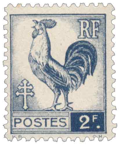 | Commentaire | Timbre gommé émis en France en 1944, le Coq d’Alger à 2 F bleu-noir appartient à la série provisoire mise en place par le Comité français de Libération nationale afin d’assurer la continuité du service postal dans les territoires libérés, d’abord en Corse puis sur l’ensemble du territoire métropolitain à partir de novembre 1944. Dessiné par Henry Razous et reproduit par reports lithographiques, ce timbre d’usage courant associe le coq gaulois, symbole national inédit sur un timbre-poste français, à la croix de Lorraine et au monogramme « RF », affirmant visuellement la rupture avec les émissions du régime précédent. Sa valeur faciale de 2 francs correspond principalement à l’affranchissement de la lettre intérieure au deuxième échelon de poids, dans un contexte de fortes tensions logistiques et tarifaires liées à la Libération. Imprimé en Algérie par l’atelier Typo-Litho Carbonnel, ce timbre illustre le rôle central d’Alger comme pôle administratif et technique du Gouvernement provisoire, ainsi que le caractère transitoire mais hautement symbolique de cette série dans l’histoire postale française. |