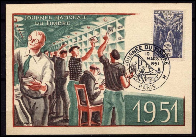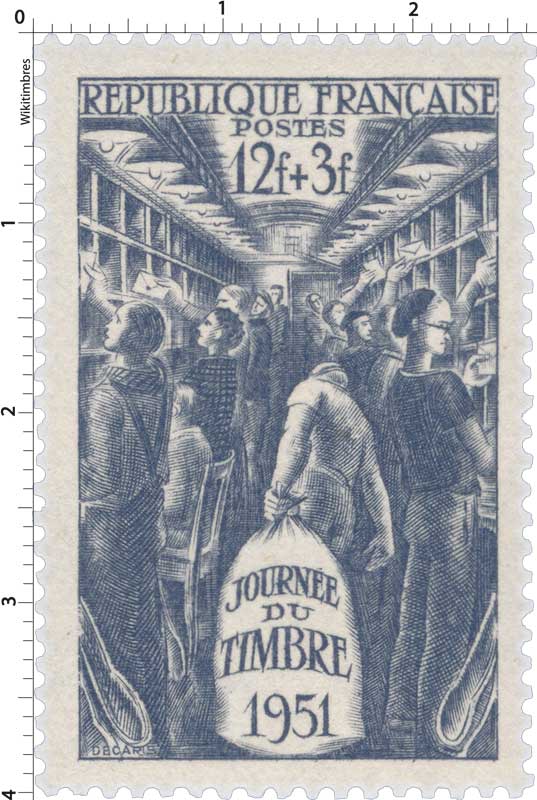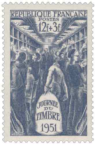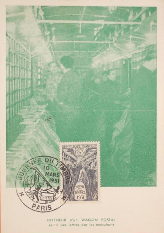 | Description | Journée du timbre 1951. Intérieur d'un wagon-poste |