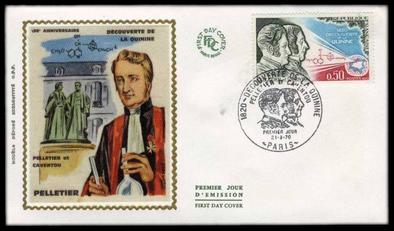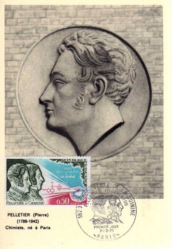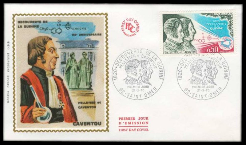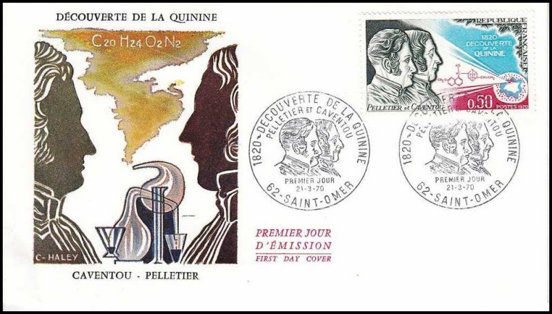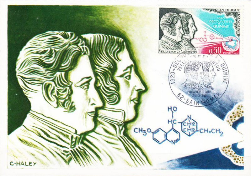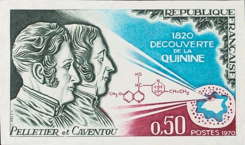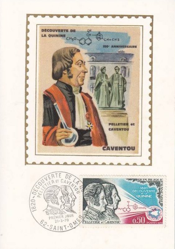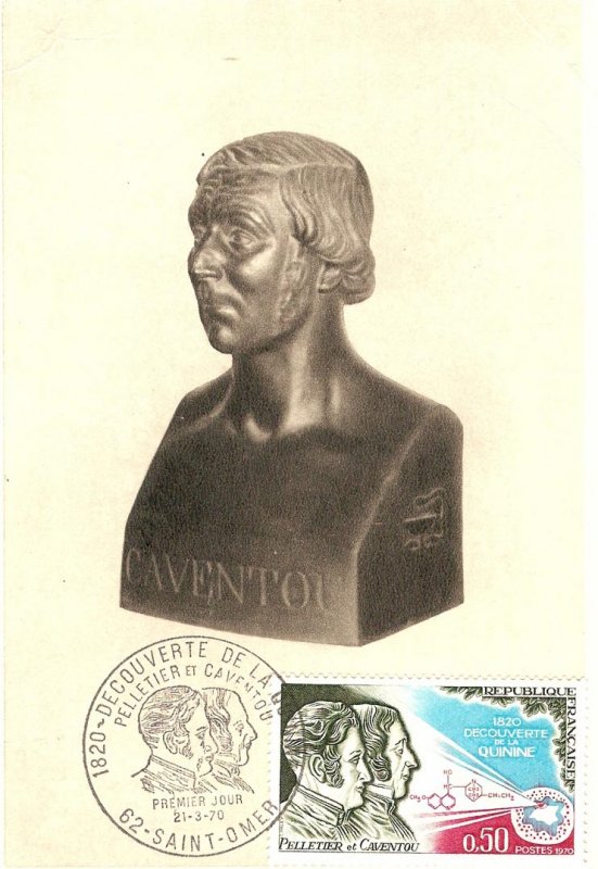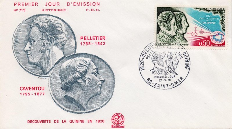 | Description | 150e anniversaire de la découverte de la quinine par Joseph Pelletier (1788-1842), né à Paris et Joseph Bienaimé Caventou (1795-1877), né à Saint-Omer |