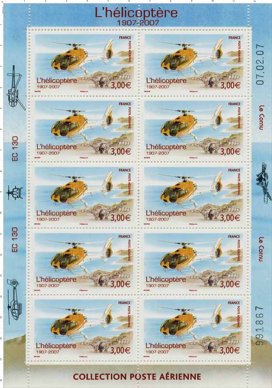 L’hélicoptère 1907 - 2007 La première image connue d’un « hélicoptère » est celle que dessina Léonard de Vinci en 1486 et qui montre une machine volante à aile tournante. L’année la plus significative est 1907, celle où les essais de « vol » emportant un homme sont réalisés par Bréguet, Richet et Paul Cornu dont l’appareil