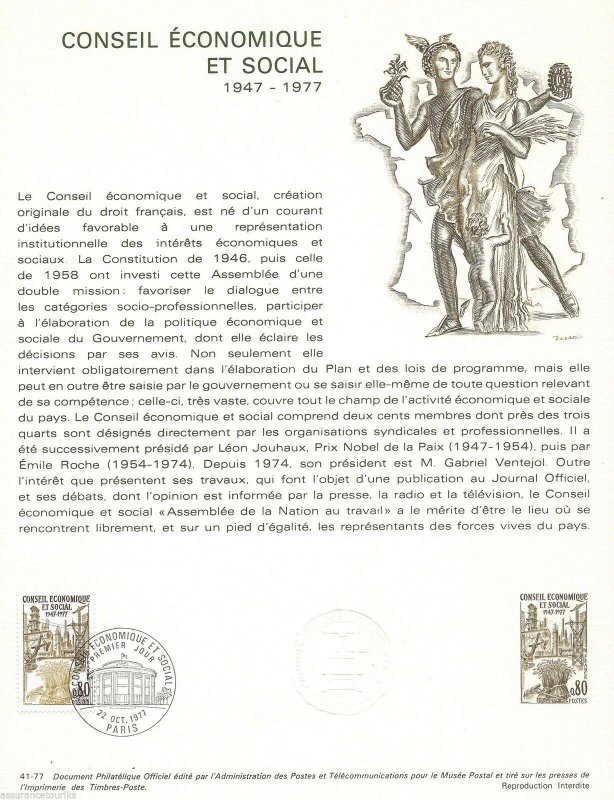 | Description | 30e anniversaire du Conseil économique et social (1947-1977) |