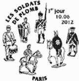 | Commentaire | Timbre à date “Premier Jour” conçu par Claude Perchat. Émis lors du salon du timbre 2012 Le soldat d'étain plat est né en Bavière au XVIIIe siècle. C'est à Nuremberg que les artisans créent de petites figurines d'étain à l'image des combattants de l'armée prussienne. L'intérêt de ces figurines réside dans le fait que les soldats sont représentés dans une grande diversité d'attitudes : à genoux, couchés ou debout. L'étain devenu trop onéreux, le plomb le remplace progressivement comme matière première. Les soldats de plomb représentent toutes les armées du monde, toutes époques confondues. Ils se développent en France surtout après la défaite de 1870, dans un esprit “revanchard” et militariste. Le désintérêt pour le soldat de plomb par la jeune clientèle sonne le glas de cette tradition. Le statut change et le soldat de plomb devient une figurine de collection pour les adultes. |