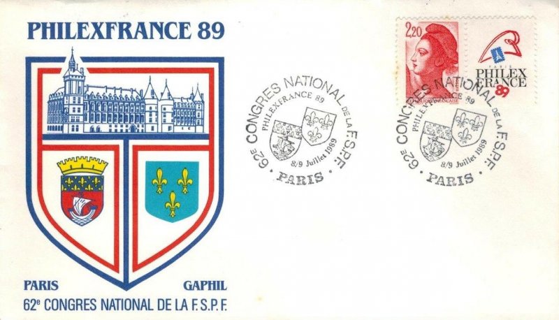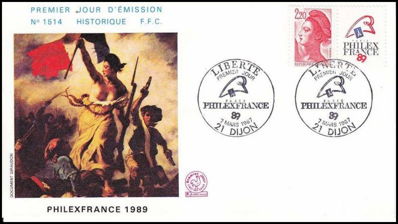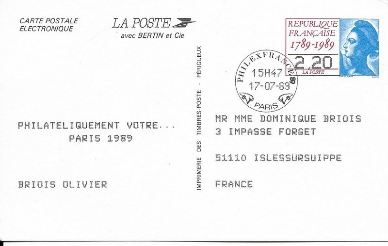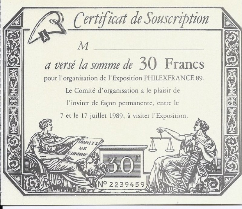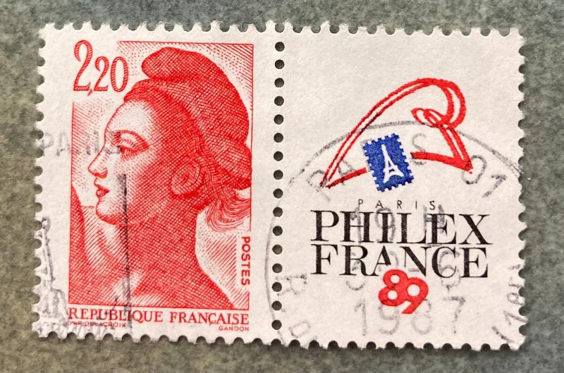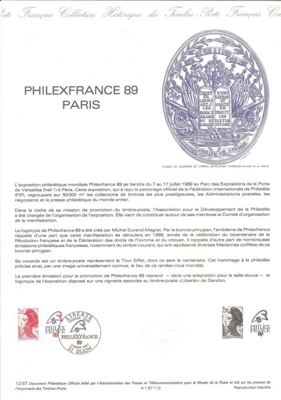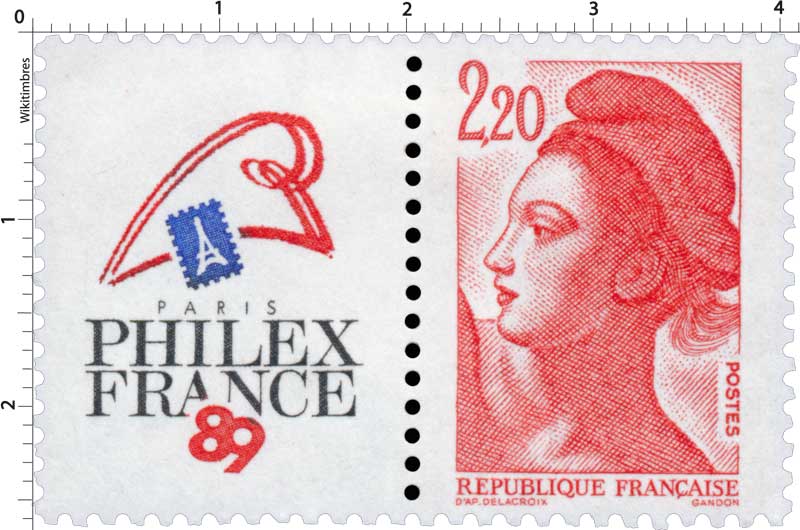 | Description | Philexfrance 89 : exposition philatélique mondiale, à Paris, du 7 au 17 juillet 1989. T.-P. de 1985 émis attenant à une vignette sans valeur comportant une adaptation du logotype de l'exposition |