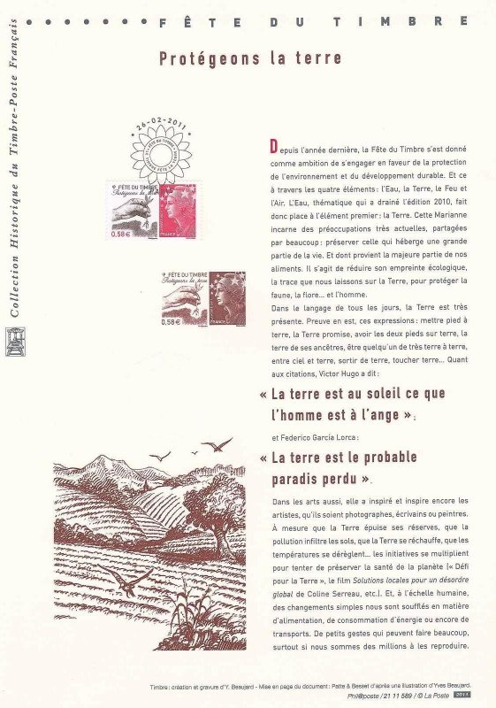 | Description | Fête du timbre. Timbre Marianne - Protégeons la terre |