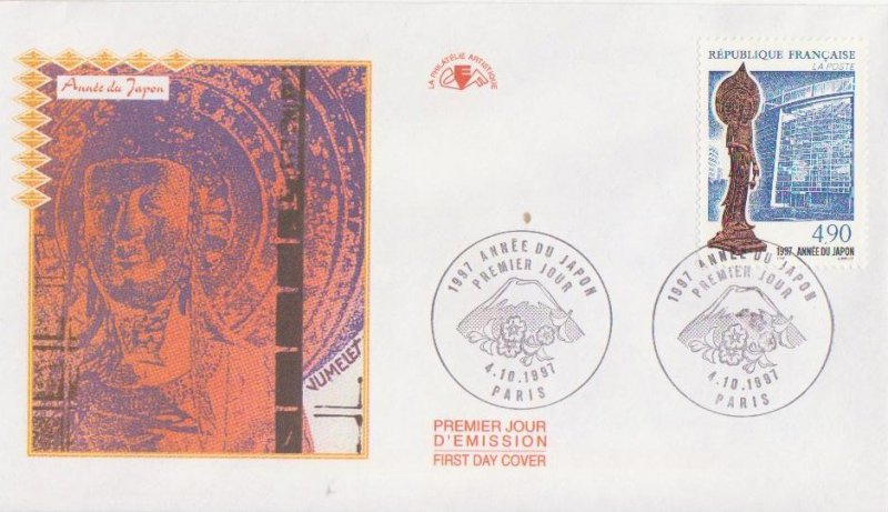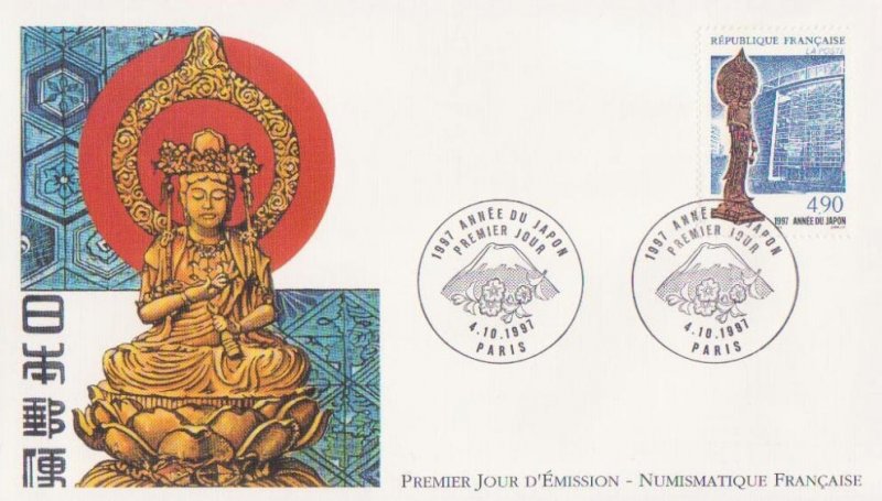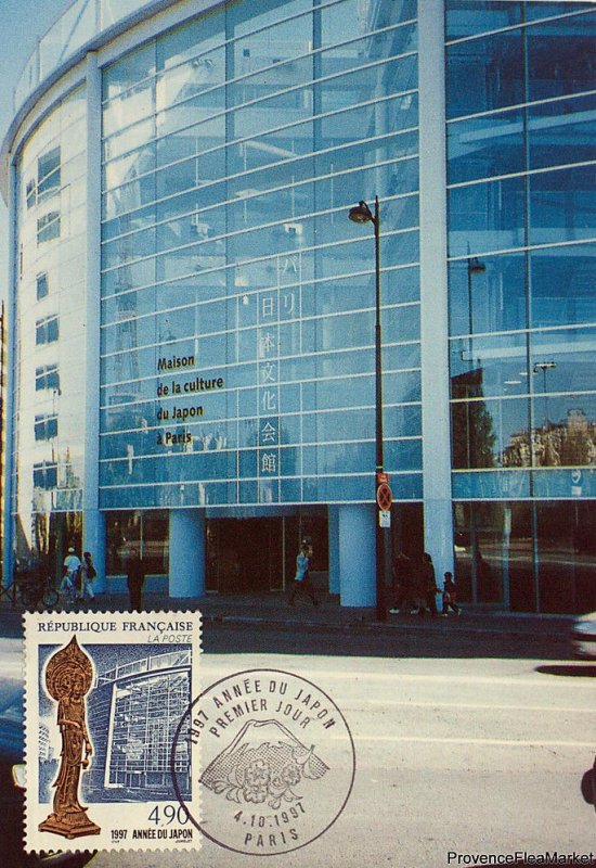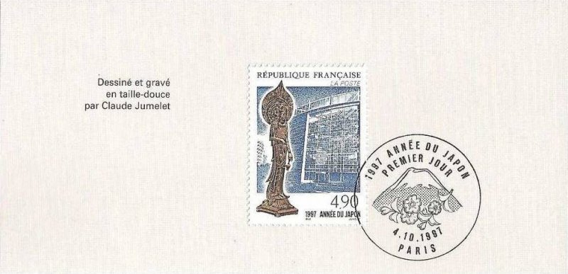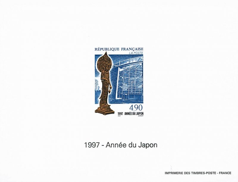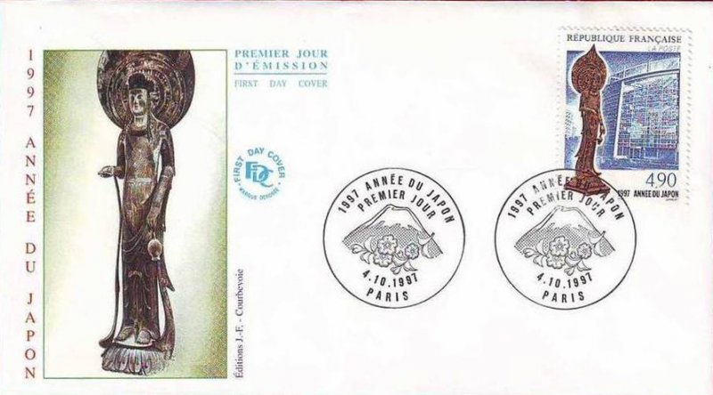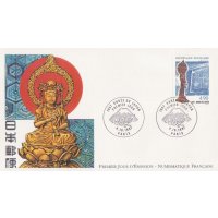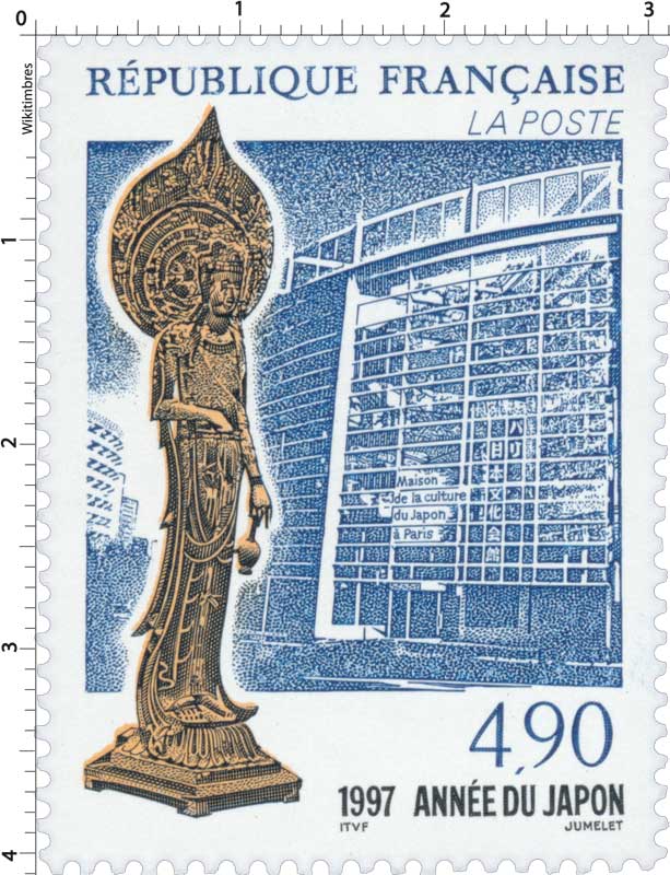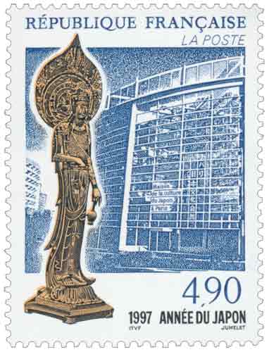 | Description | Année du Japon, représentation de la sculpture du bodhisattva debout, dit Kudara Kannon, datant du VIIe siècle et en fond la maison de la culture du Japon à Paris |