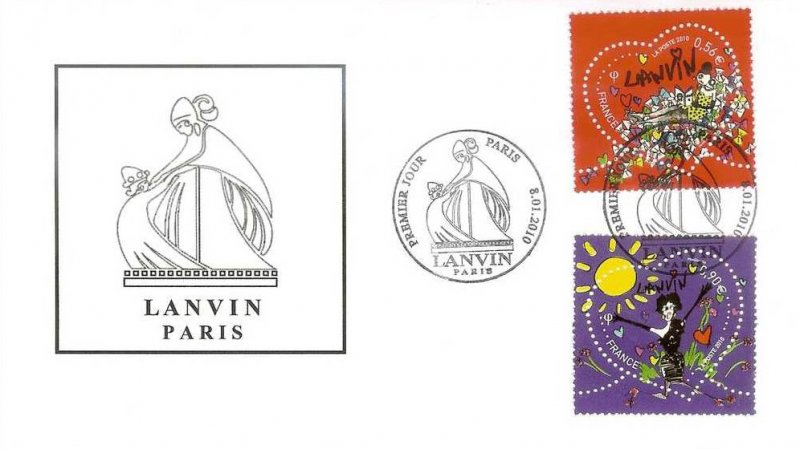 | Commentaire | Existe également en autoadhésif. La Poste et Lanvin célèbrent l’anniversaire de la plus ancienne maison de couture française créée par Jeanne Lanvin en 1889.