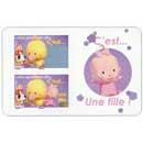 | Description | Timbres de naissances. C'est une fille timbre à gratter |