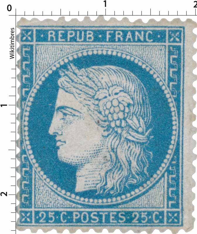 Le 25 centimes bleu type III, n°60C, apparaît en 1874 et vient compléter l’évolution progressive des planches d’impression utilisées pour cette valeur essentielle de la IIIe République. Après les types I (1871) et II (1873), ce nouveau type représente un troisième état du dessin, retouché afin d’améliorer encore la netteté des détails et la qualité générale des tirages.