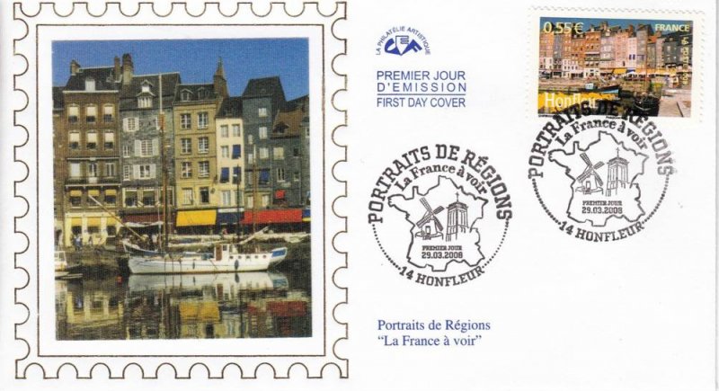 | Commentaire | BF117. Bloc de dix timbres de 0,55 euro La mise en vente anticipée du bloc a lieu dans plusieurs villes concernées par le sujet des timbres : Castelnaudary, Coulon, Honfleur, Paris, Perros-Guirec, Rigny-Ussé, Salazie, Sarlat-la-Canéda, Strasbourg et Vézelay. Le cachet premier jour représente une carte de la France métropolitaine sur laquelle figure un moulin et un clocher. |