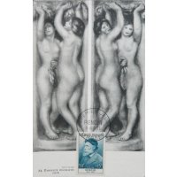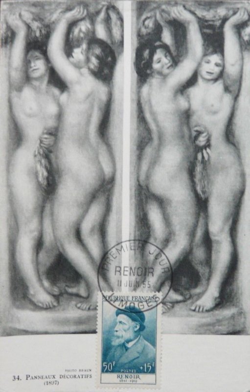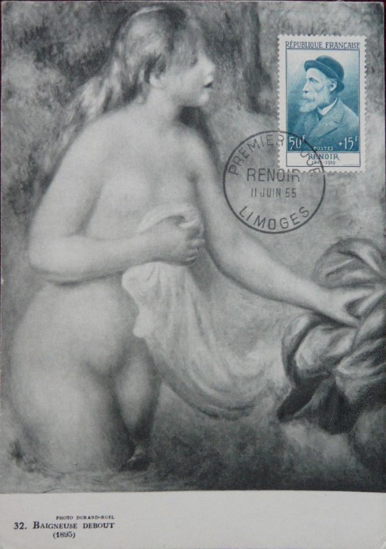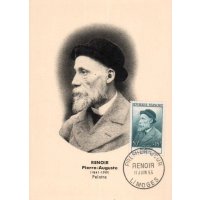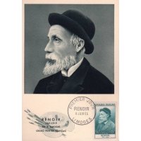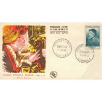 | Commentaire | Ce timbre est grevé d'une surtaxe au profit de la Croix Rouge française Visuel : Pierre-Auguste Renoir a joué un grand rôle dans la formation de l'art contemporain. Il appartint à l'impressionnisme, mais le dépassa toujours par son romantisme inné, sa limitation volontaire sur le thème du nu féminin. Il revient ensuite à un impressionnisme plus soucieux des volumes, que des couleurs. Ses toiles reflètent une personnalité riche et soucieuse de renouvellement. |