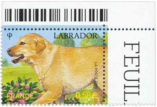 | Description | Les chiens de race, le labrador - issu d'une feuille de 42 (impression sur le bord des dents) |