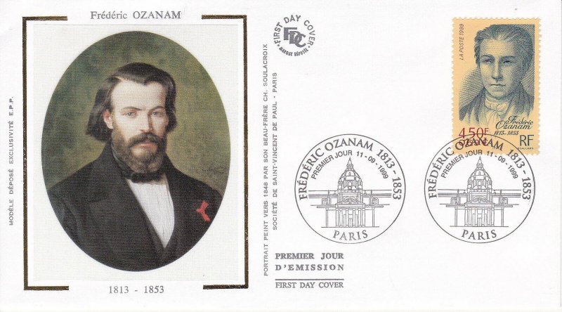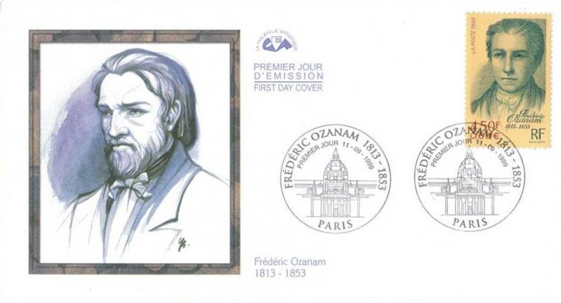 | Description | Hommage à Frédéric Ozanam (1813-1853), historien, essayiste et fondateur de la Société de Saint-Vincent-de-Paul. Béatifié par le pape Jean-Paul II, le 22 août 1997 |