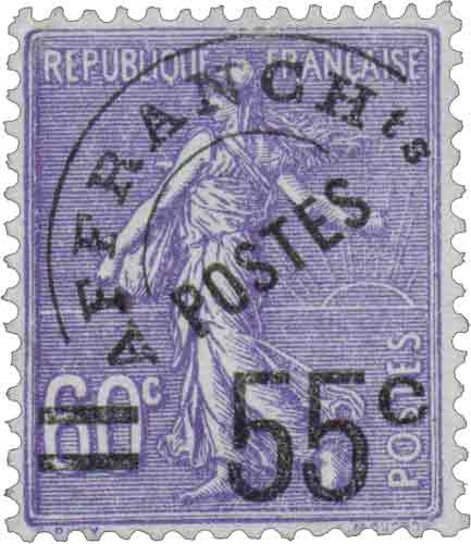 | Commentaire | Nota Les ombres portées sur la Semeuse sont mal positionnées par rapport au soleil, de plus elle sème contre le vent Ce timbre préoblitéré de 1926 appartient à la longue et emblématique série de la Semeuse de Roty, figure majeure de l’iconographie postale française. Créée par Louis-Oscar Roty, gravée par François Guillemain d’après un dessin de Louis Eugène Mouchon, la Semeuse incarne depuis la fin du XIXᵉ siècle une République tournée vers l’avenir, le travail et la diffusion du progrès. L’exemplaire à 55 centimes sur 60 centimes violet, imprimé sur fond ligné, répond à un usage très précis : il est spécialement émis pour les magasins “Le Louvre”, afin d’assurer l’expédition de catalogues commerciaux pesant entre 200 et 300 grammes. Il correspond au tarif de l’imprimé non périodique urgent, troisième échelon de poids en vigueur au moment de sa conception. Cependant, ce timbre illustre parfaitement les aléas de la réglementation postale. Livré trop tard, il devient immédiatement inadapté : le tarif passe de 55 à 65 centimes le jour même de la mise à disposition. Pour pallier cette situation, chaque catalogue expédié doit recevoir un complément de 10 centimes, au moyen d’un timbre Semeuse camée vert préoblitéré type 3 à surcharge rotative, les deux timbres étant collés sur l’étiquette bleue du catalogue. Ce détail, attesté par le catalogue Marianne 1984-1985, confère à cette émission un intérêt postal et historique particulier. Sur le plan philatélique, ce timbre se distingue par son format réduit, son impression typographique, sa préoblitération, et l’absence d’informations connues concernant son tirage exact. Il s’agit d’un timbre fonctionnel, conçu pour un usage professionnel ciblé, mais devenu aujourd’hui une pièce recherchée pour l’étude des tarifs, des usages commerciaux et des anomalies de mise en service.