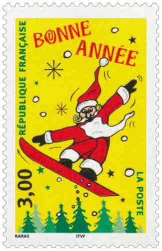 | Description | Meilleurs Vœux. Bonne année, Père Noël pratiquant le snowboard |