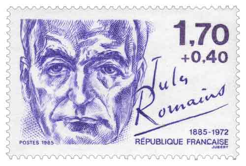 | Commentaire | Le timbre issu de la feuille est dentelé 13 Ce timbre est consacré à Jules Romains, écrivain majeur du XXe siècle, dont l’œuvre s’organise autour d’une conception originale de la littérature connue sous le nom d’unanimisme, visant à représenter la dimension collective des existences humaines. Né en 1885 à Saint-Julien-Chapteuil sous le nom de Louis Farigoule, Jules Romains suit une formation brillante à l’École normale supérieure avant de se consacrer très tôt à l’écriture, explorant successivement la poésie, le théâtre et le roman. L’unanimisme, qu’il théorise et met en pratique dès ses premiers textes, repose sur l’idée que certaines situations révèlent une conscience commune partagée par les individus d’un même groupe, et que l’écrivain doit en rendre compte en dépassant la seule psychologie individuelle. Cette approche irrigue l’ensemble de son œuvre, des recueils poétiques comme La Vie unanime aux grandes fresques romanesques. Au théâtre, Jules Romains rencontre un succès considérable avec des comédies satiriques telles que Knock ou le triomphe de la médecine, où l’observation sociale et l’ironie se conjuguent avec une grande efficacité dramatique. Dans le domaine du roman, Les Copains et surtout Les Hommes de bonne volonté, vaste cycle de vingt-sept volumes rédigé entre 1932 et 1947, proposent une chronique ambitieuse de la société française de l’avant-guerre à l’entre-deux-guerres, illustrant pleinement sa conception collective de l’histoire. Élu à l’Académie française en 1946, Jules Romains demeure une figure centrale de la vie intellectuelle française par l’ampleur et la diversité de son œuvre. L’émission de ce timbre en 1985 s’inscrit dans la politique postale de mise à l’honneur des grands écrivains dont la production a marqué durablement la littérature française, en soulignant l’originalité d’une pensée et d’une écriture attentives aux dynamiques sociales et aux forces invisibles qui traversent les communautés humaines. Article rédigé pour WikiTimbres |
