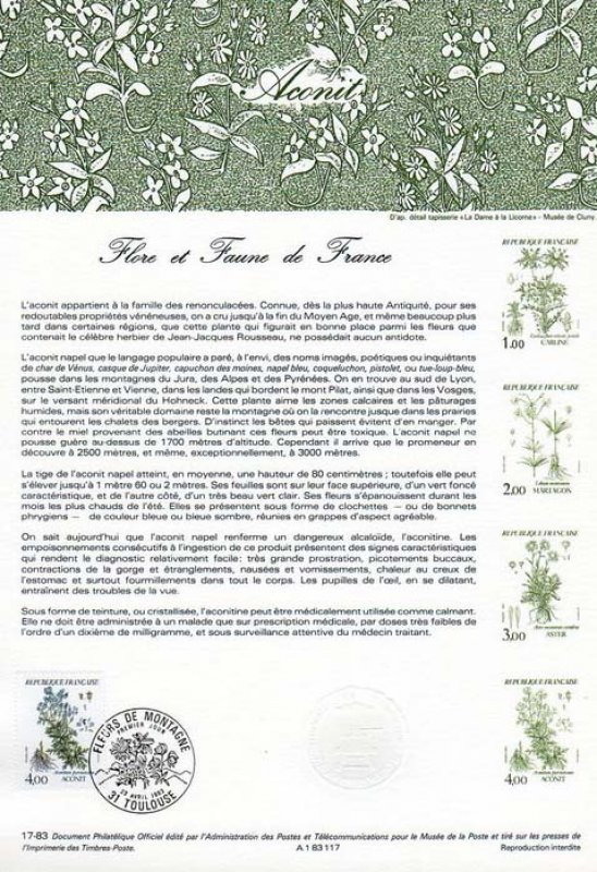 | Commentaire | Timbre erroné, il s'agit plutôt de l'Aconitum Napellus |