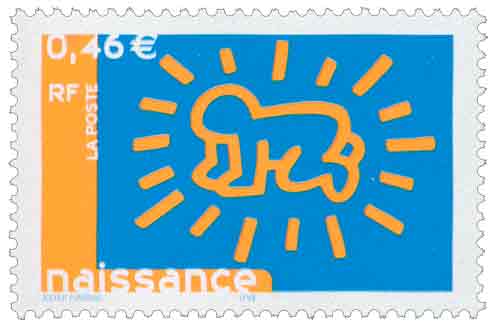 | Commentaire | Description synthétique du visuel du timbre : Keith Haring est né en Pennsylvanie en 1958 et est décédé en 1990 à New-York. Il étudia le graphisme publicitaire puis très tôt peint sur les murs du métro de New-York, sur les murs de Berlin et dans des hôpitaux aux États-Unis et en Europe (hôpital Necker à Paris). Reconnu avant tout comme un chantre de la culture urbaine, il se considérait comme un peintre de la société moderne, en particulier new-yorkaise. Un trait simple et des symboles facilement lisibles et colorés caractérisent une œuvre narrative, montrant des animaux, des enfants et reflétant pour certaines une certaine innocence. Timbre sans millésime |