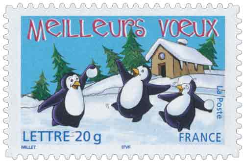 | Description | Meilleurs vœux. Pingouins. Émis en carnet. 2 bandes de phosphore |