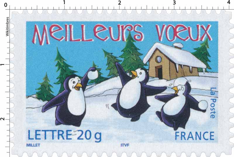 | Description | Meilleurs vœux. Pingouins. Émis en carnet. 2 bandes de phosphore |